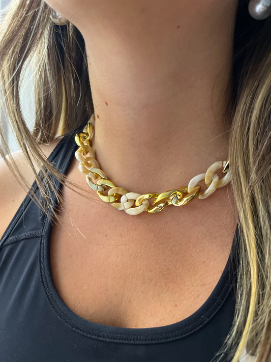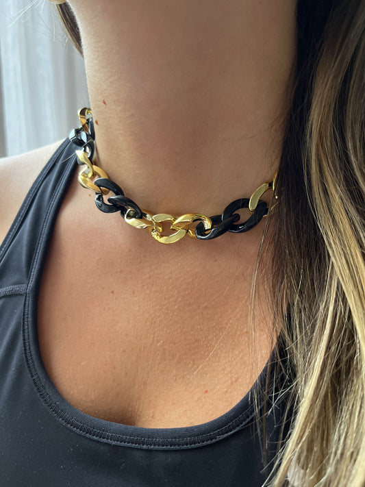 CHOCKER CADENA DORADO Y NEGRO ACRILICO