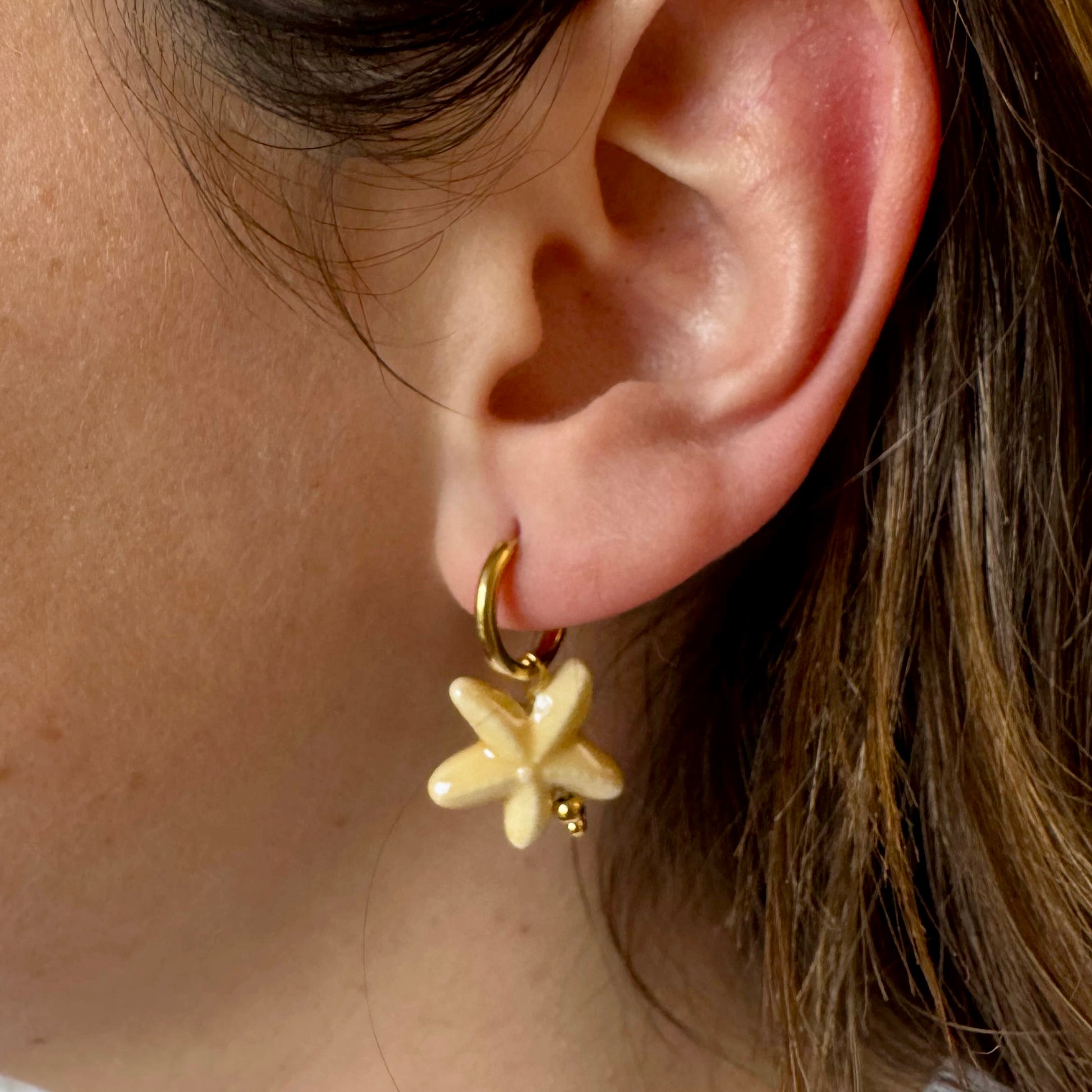 Un toque de cielo, aros con estrella arena, ilumina tu look con estilo y movimiento. El detalle perfecto para brillar este verano con full estilo.