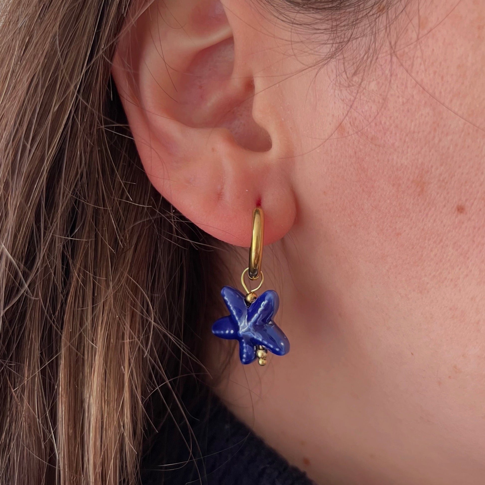 Aros estrella azul, ilumina tu look con estilo y movimiento. El detalle perfecto para brillar este verano con full estilo.