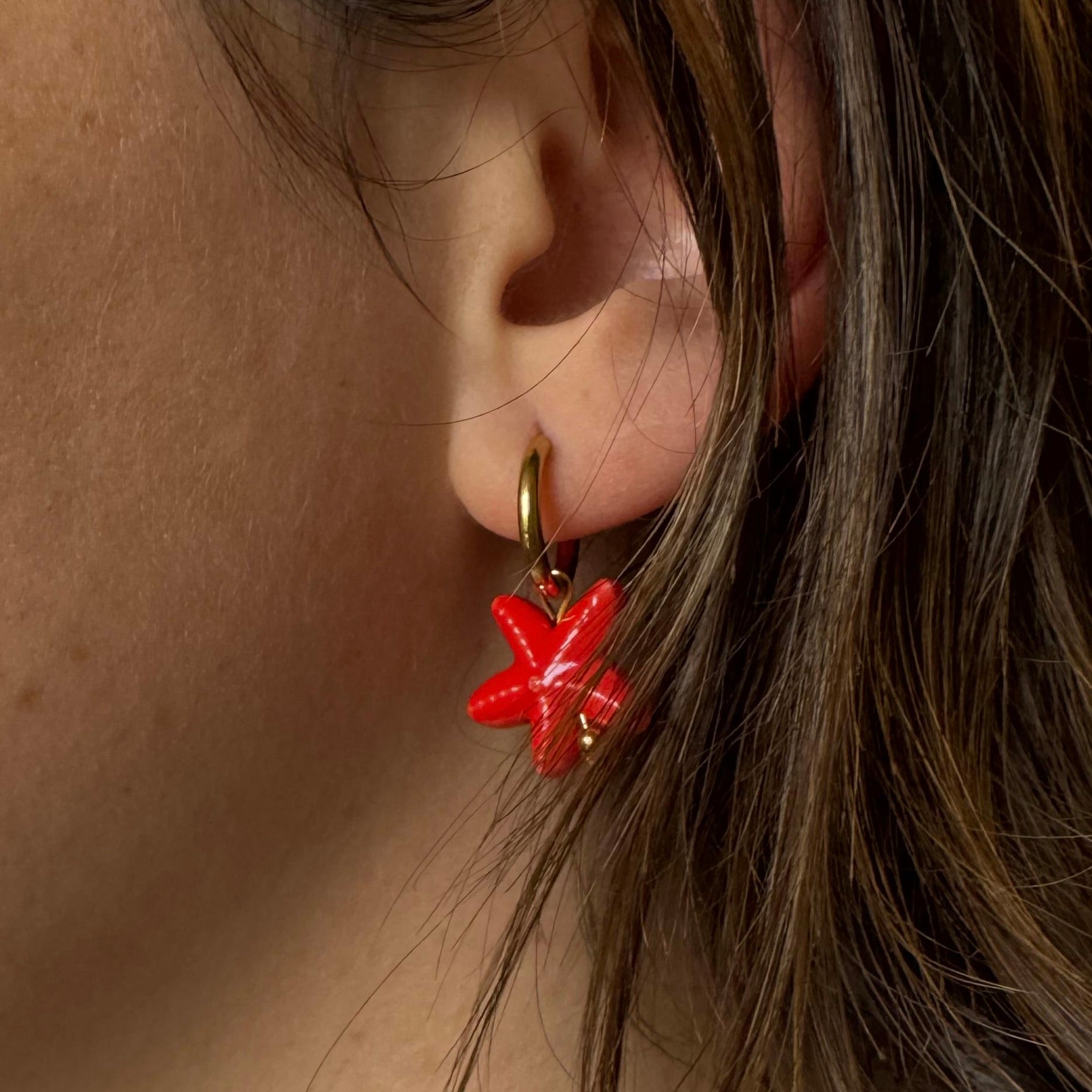 Un toque de cielo, aros con estrella rojos, ilumina tu look con estilo y movimiento. El detalle perfecto para brillar este verano con full estilo.