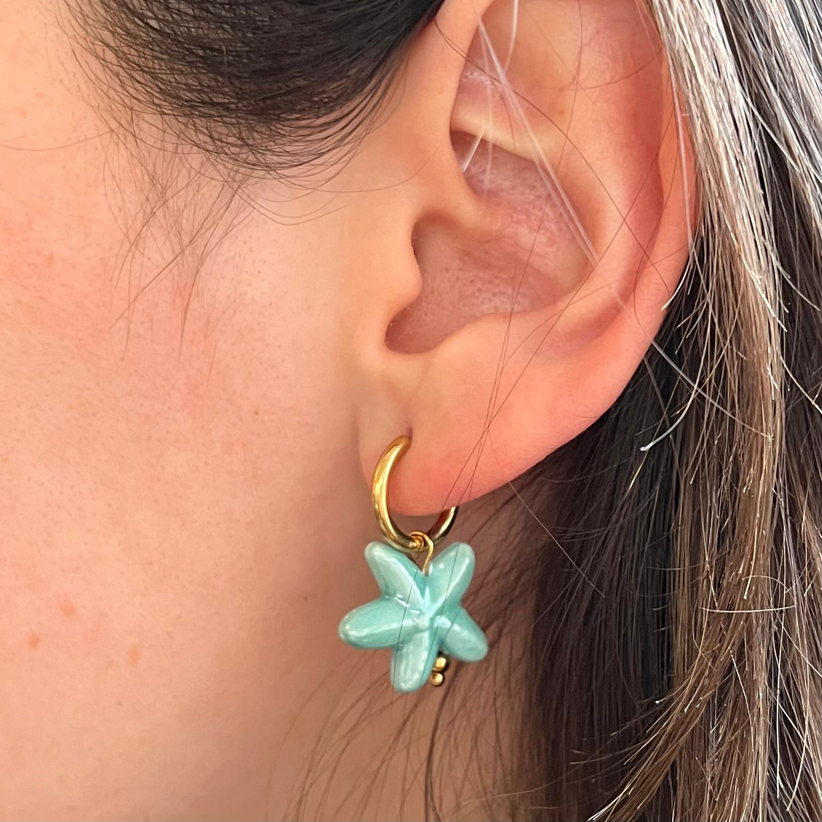 Un toque de cielo, aros con estrella color turquesa, ilumina tu look con estilo y movimiento. El detalle perfecto para brillar este verano con full estilo.