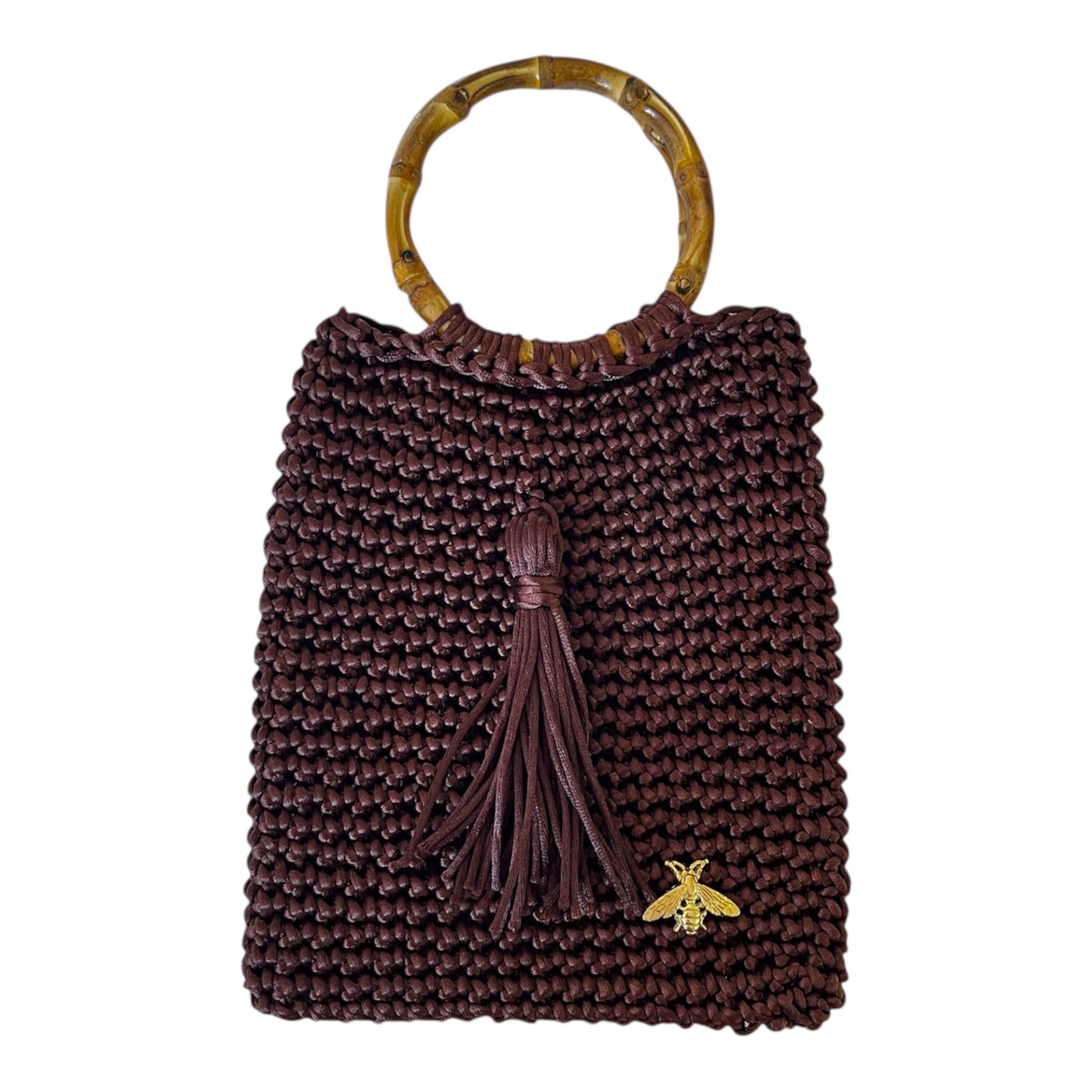 Selene: Cartera a crochet tejida a mano en color café. Es la definición de sofisticación natural, tejida a mano con un textura rica y brillo sutil café mocha. Selene es una pieza elegante perfecta para añadir un toque chic elegante indispensable para cualquier temporada, un elemento de diseño natural y sofisticado.